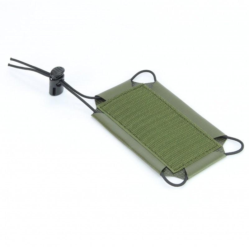 Anwendung: einfache Befestigung auf einer Klettfläche (in einem Rucksack oder Admin Pouch) - mittels Gummiband kann ein Smartphone einfach und sicher darauf befestigt werden